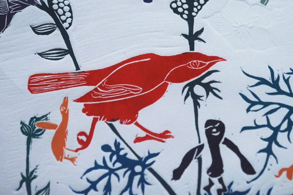 La muestra reúne xilografía, litografía, grabado en metal, pintura y greda de Quinchamalí, que dialogan entre la memoria, el territorio y la tradición artesanal.