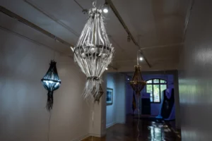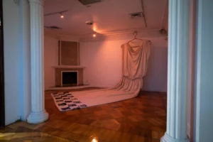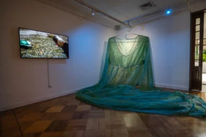 La exposición presenta dos videos que muestran como algunos de estos vestidos han sido llevados en “procesión” por las calles de Valparaíso, o por una quebrada cordillerana. Este gesto remite a recuperar una poética que nos conecta con una parte humana, en un proceso necesario de integración del femenino con nuestra realidad.
