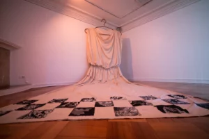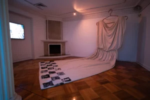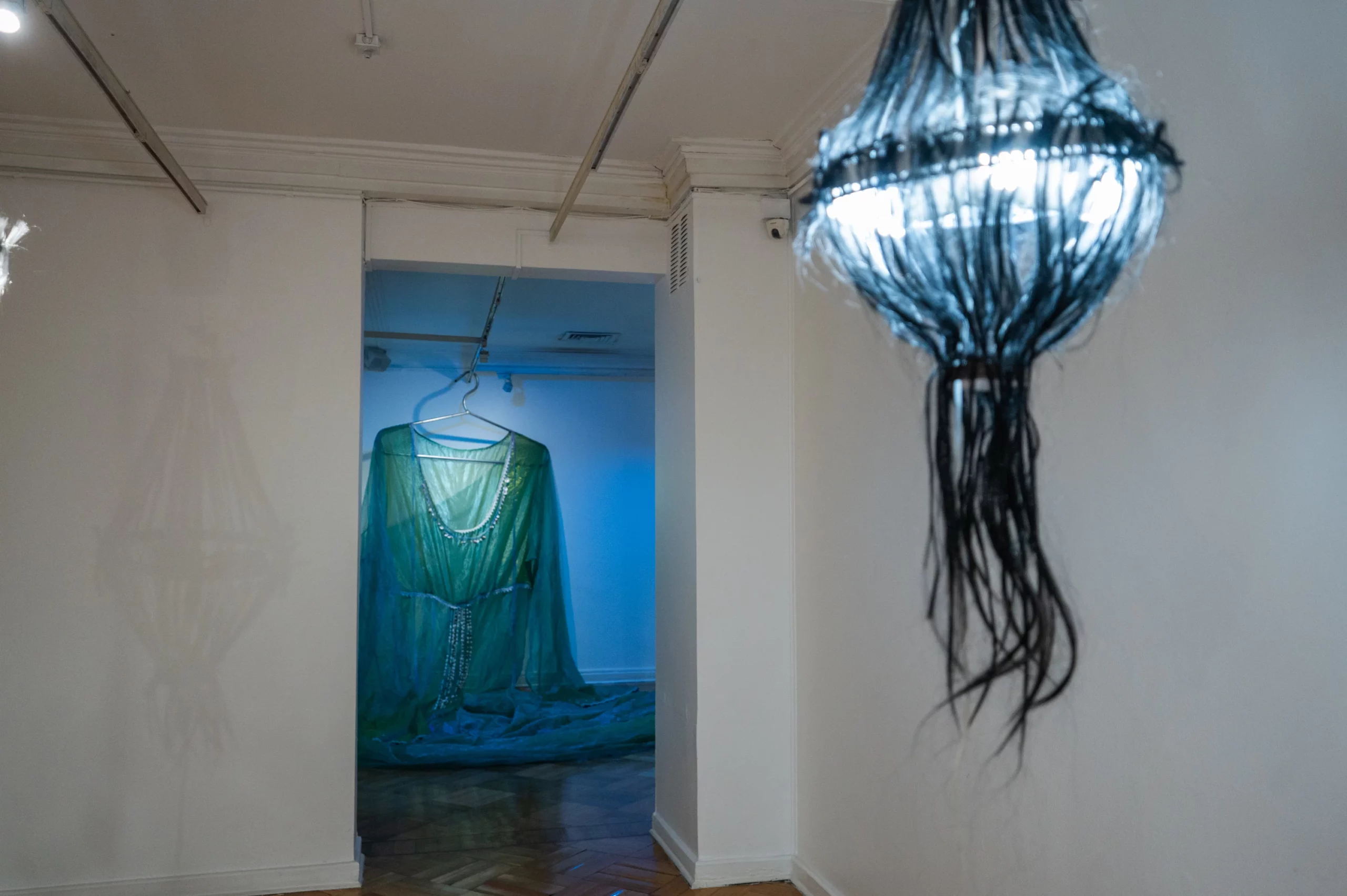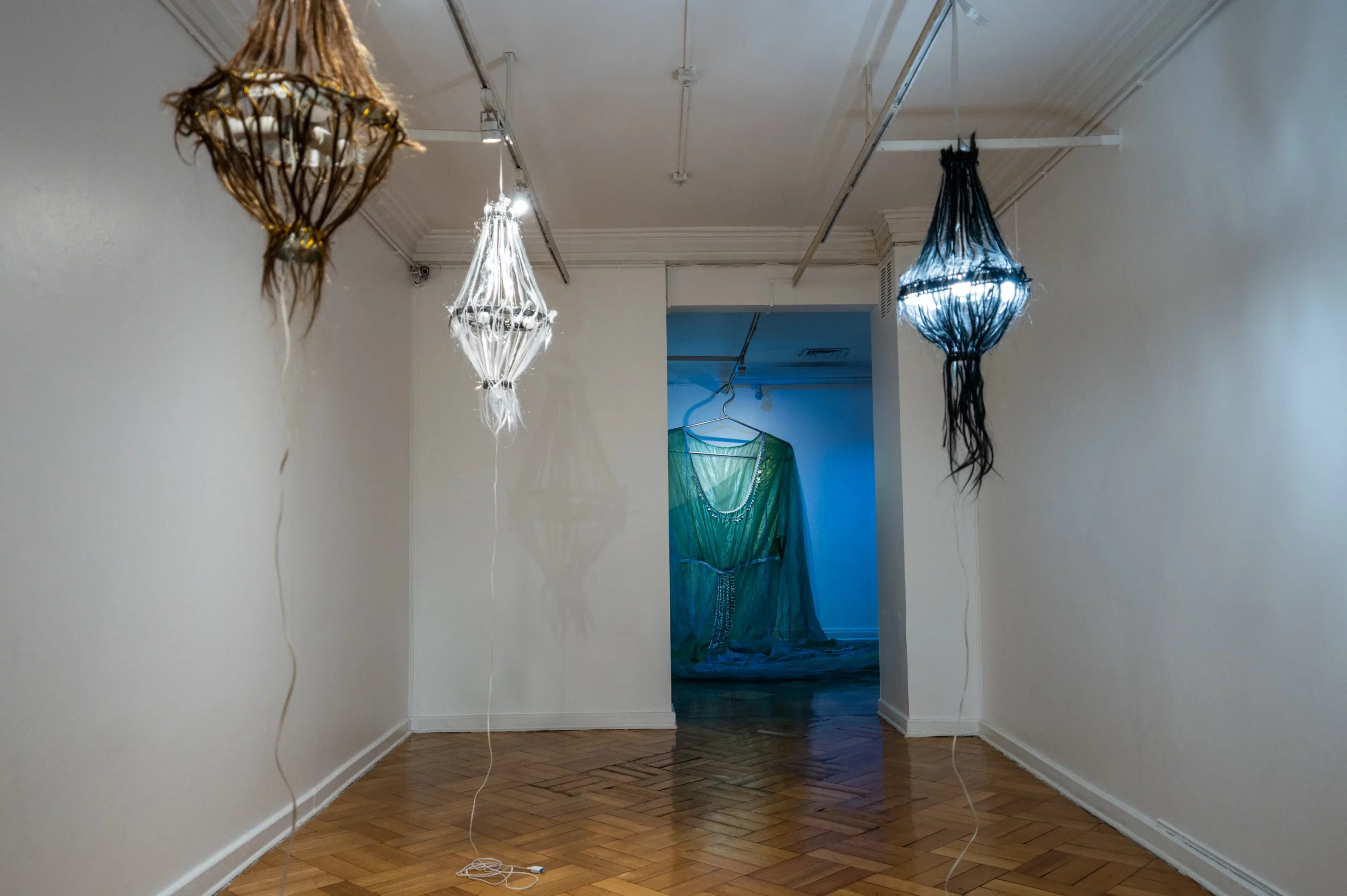 Mediante la presencia de cuatro vestidos gigantes, un delantal doméstico, un jumper, y dos túnicas que aluden a un simbolismo relegado a un plano menor, la exposición escenifica varias atmósferas diversas que esperan sumergir al espectador en una experiencia sensorial. Mediante videos, objetos y fotografía, la artista propone entrar en un mundo subjetivo donde lo femenino logre instalarse nuevamente en el espectador como una experiencia que permita volver a situar esta presencia fundamental.