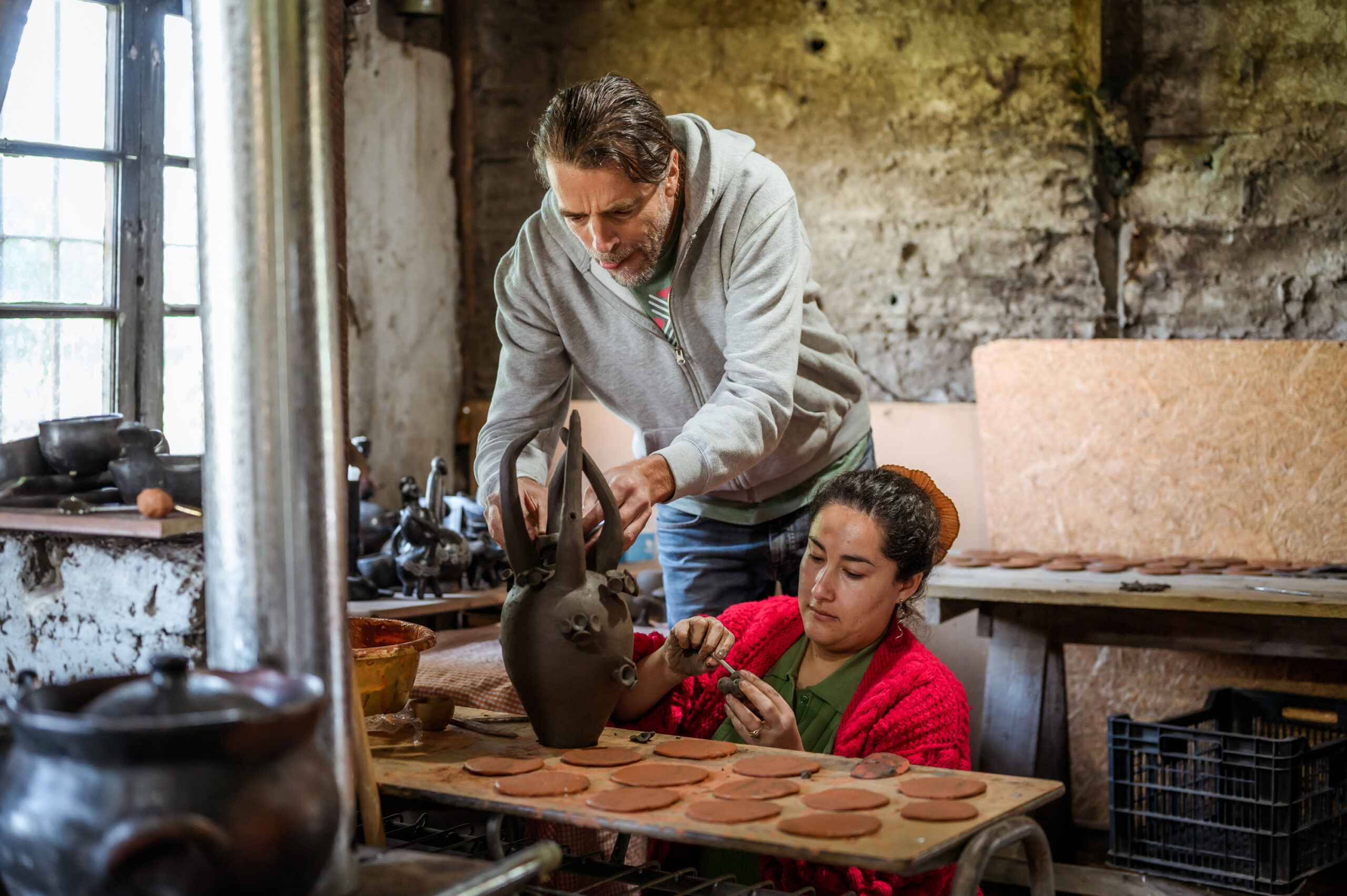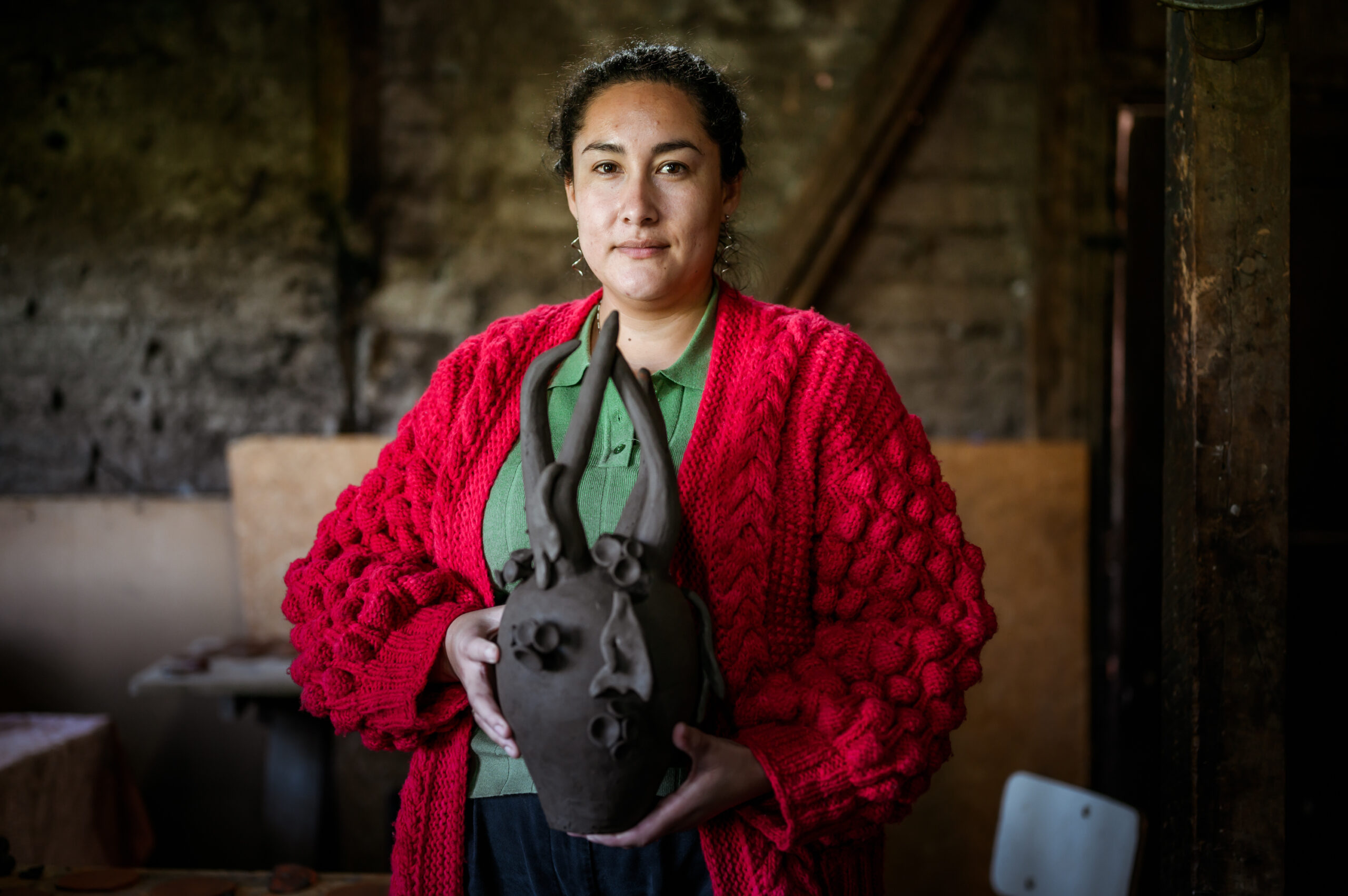 La muestra que se enmarca en una nueva vinculación de la Universidad de Concepción Campus Chillán con la Bienal Internacional de Arte Contemporáneo del Sur, BienalSur, presentará como resultado del proceso colaborativo que ambos artistas continúan desarrollando durante una residencia creativa en Quinchamalí, desde el 23 hasta el 30 de septiembre. Durante estos días, el destacado ceramista argentino Leo Battistelli –uno de los grandes referentes de la cerámica contemporánea y radicado en Río de Janeiro– ha compartido saberes y procesos con Nayadet Núñez, reconocida artesana de Quinchamalí, localidad icónica de la cerámica tradicional de Chile, distinguida por su arcilla negra y su rica iconografía rural.