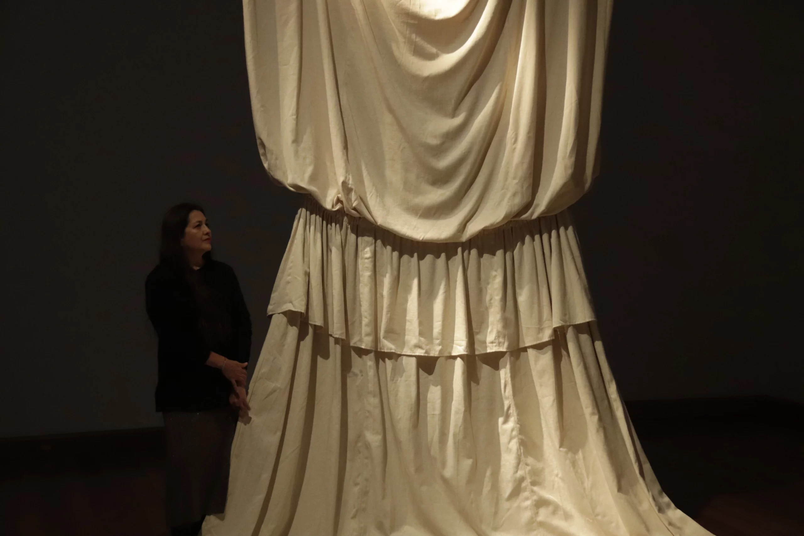 “Es una oportunidad para el público mirar esta exposición desde este lugar que lo sitúa en el mes de la mujer y descubrir una manera de hablar de la mujer y el femenino como una fuerza, como una energía. Quizás, uno podría esperar obras más reivindicativas o activistas, como un feminismo más literal; sin embargo, se van a encontrar con objetos, vestidos y, probablemente, memorias de la infancia, que nos atañen a todos: los delantales, la imagen de esta diosa que puede simbolizar protección femenina, maternal, o la musa, que es un referente de una sabiduría ancestral. Eso me gustaría, que se pueda reconocer ese poder y capacidad cuidadora (…) También me gustaría que al encontrase con objetos como las lámparas de pelo, que son quizás un poco extraños, nos puedan remitir a nuestras experiencias de infancia, a algunos cuentos, o algunos temores que pudimos haber cultivado de niños, a las brujas, figuras mitológicas o más mágicas. Porque el femenino es muy amplio; habita el hogar, pero también el universo, el planeta, la naturaleza, como fuerza. Entonces busco ampliarlo desde una noción más conocida, más literal, hacia verlo como una energía más universal”.